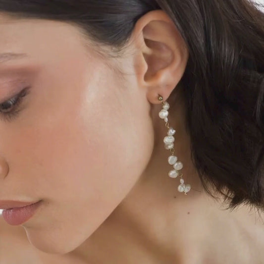 SOLGLITTER – Långt örhänge med skimrande sötvattenpärlor