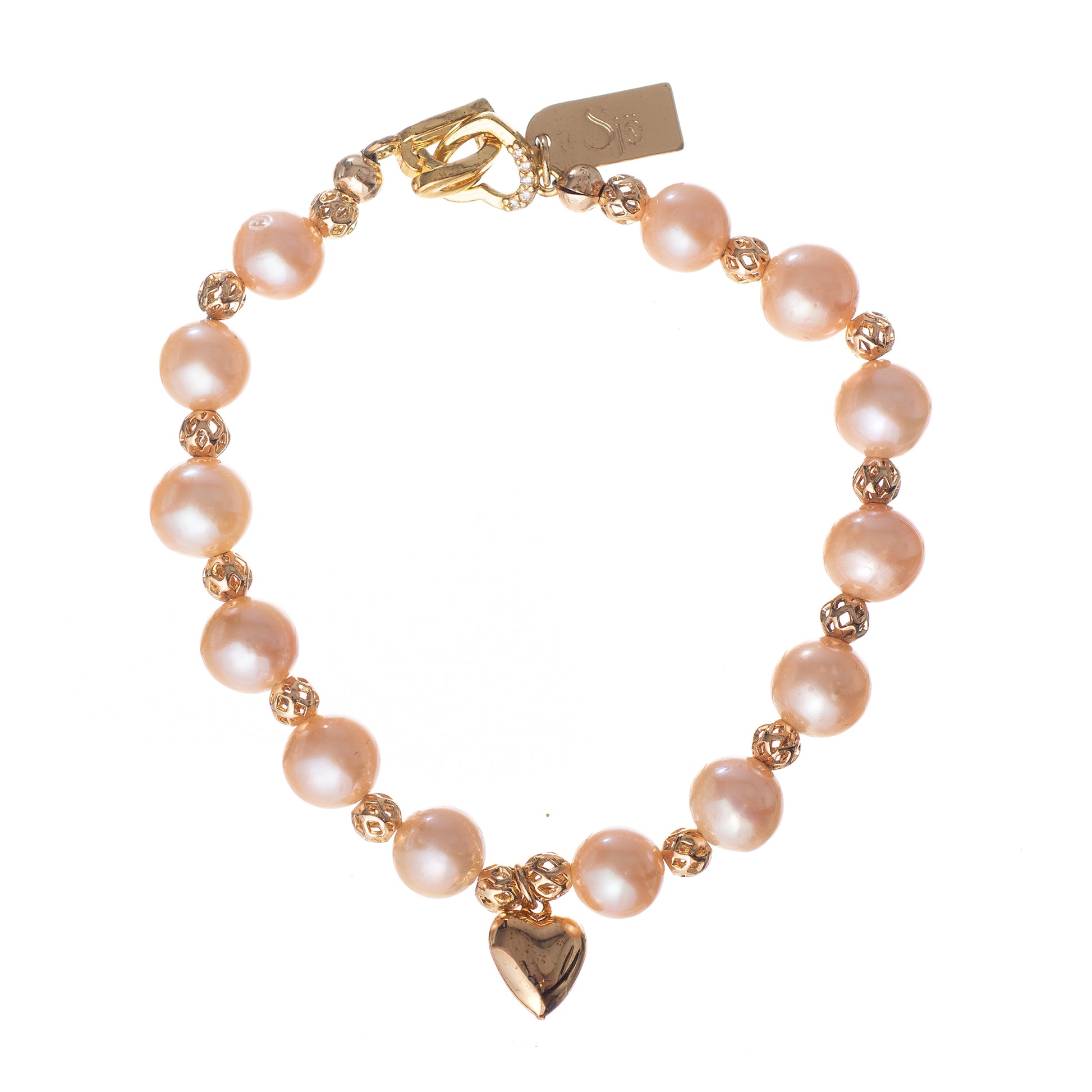 HJÄRTSKATT är ett romantiskt pärlarmband skapat med naturliga sötvattenpärlor och guldpläterade detaljer i eco-mässing. I mitten sitter ett vackert guldhjärta, en symbol för kärlek och det hjärtformade låset med gnistrande zirkoner ger armbandet en exklusiv och romantisk känsla. Perfekt som present till någon du älskar- eller till dig själv.