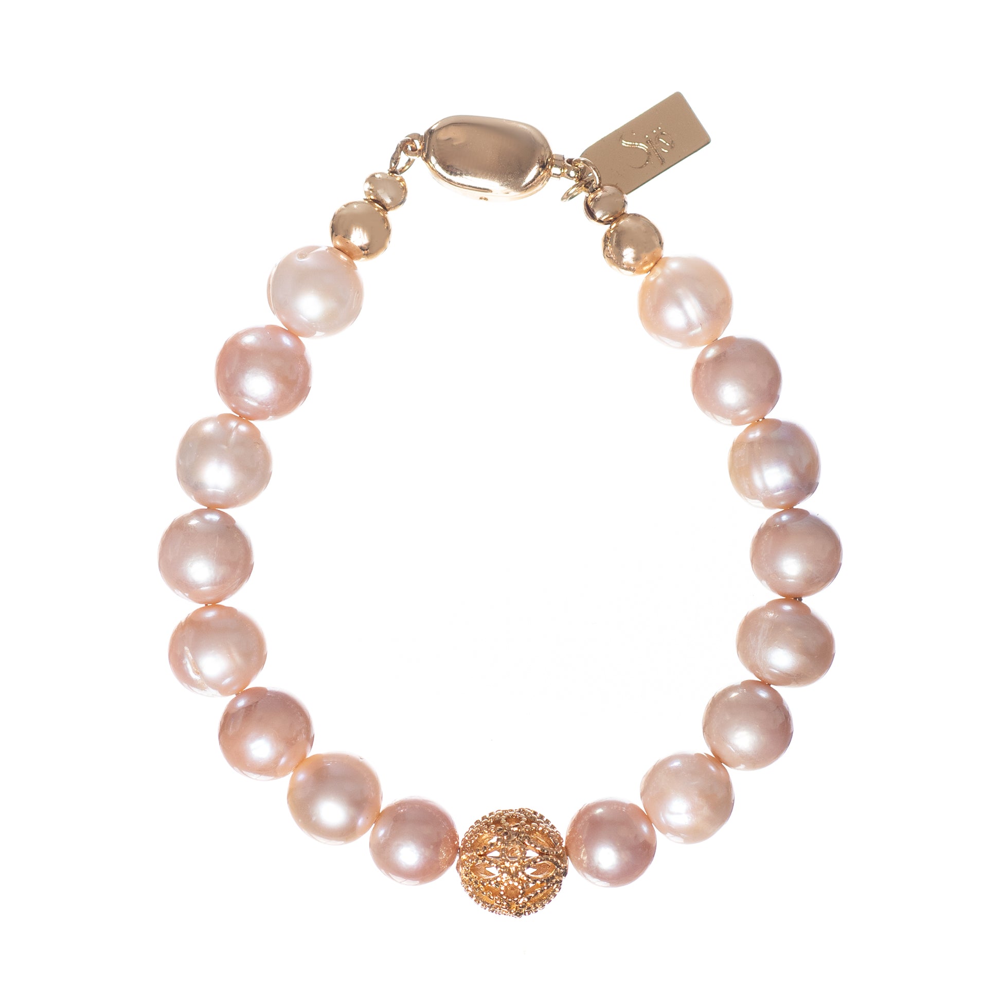 SOLGLIMT är en klassisk design som kombinerar pärlor med en detorativ guldpärla i mitten på 14K guldpläterad mässing. Ett elegant armband som lyser upp vilken outfit som helst.