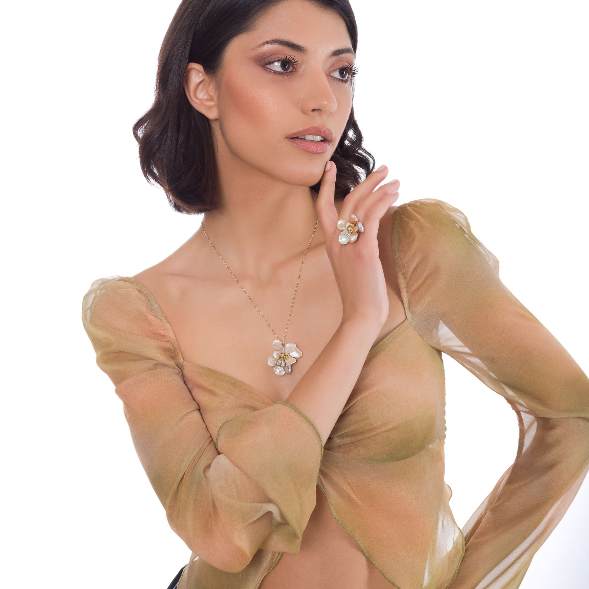 • Pärlor är av organiska material och ska ej användas vid fysisk aktivitet eller i fuktiga/varma miljöer. Ta alltid av dina pärlsmycken vid dusch/bad.
