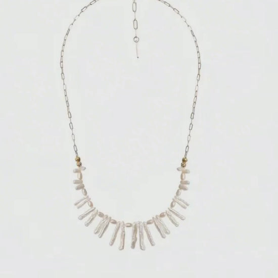 PÄRLOCEAN är ett unik och iögonfallande halsband som inspirerats av havets djup och rörelse. De oregelbundna baroque pärlorna i kombination med 14K guldpläterad mässing skapar ett dynamiskt, organisk uttryck som är både elegant och konstnärligt.