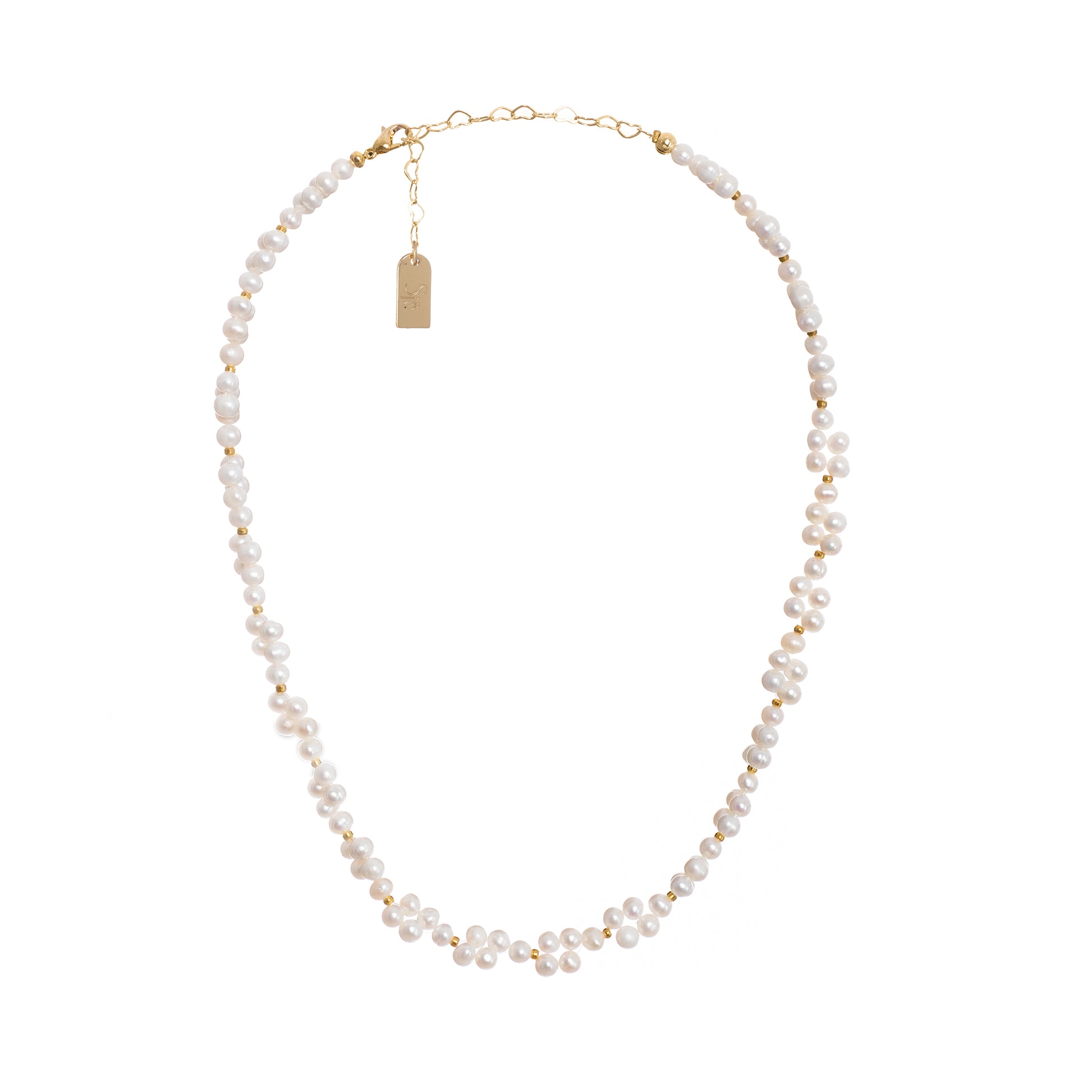 BLOMSTERÄNG är en förtrollande design av sötvattenpärlor formade som små blommor på 14K guldpläterad mässing. Detta skapar en elegant och feminin design som passar perfekt för att lägga till en touch av romantik till vilken outfit som helst.