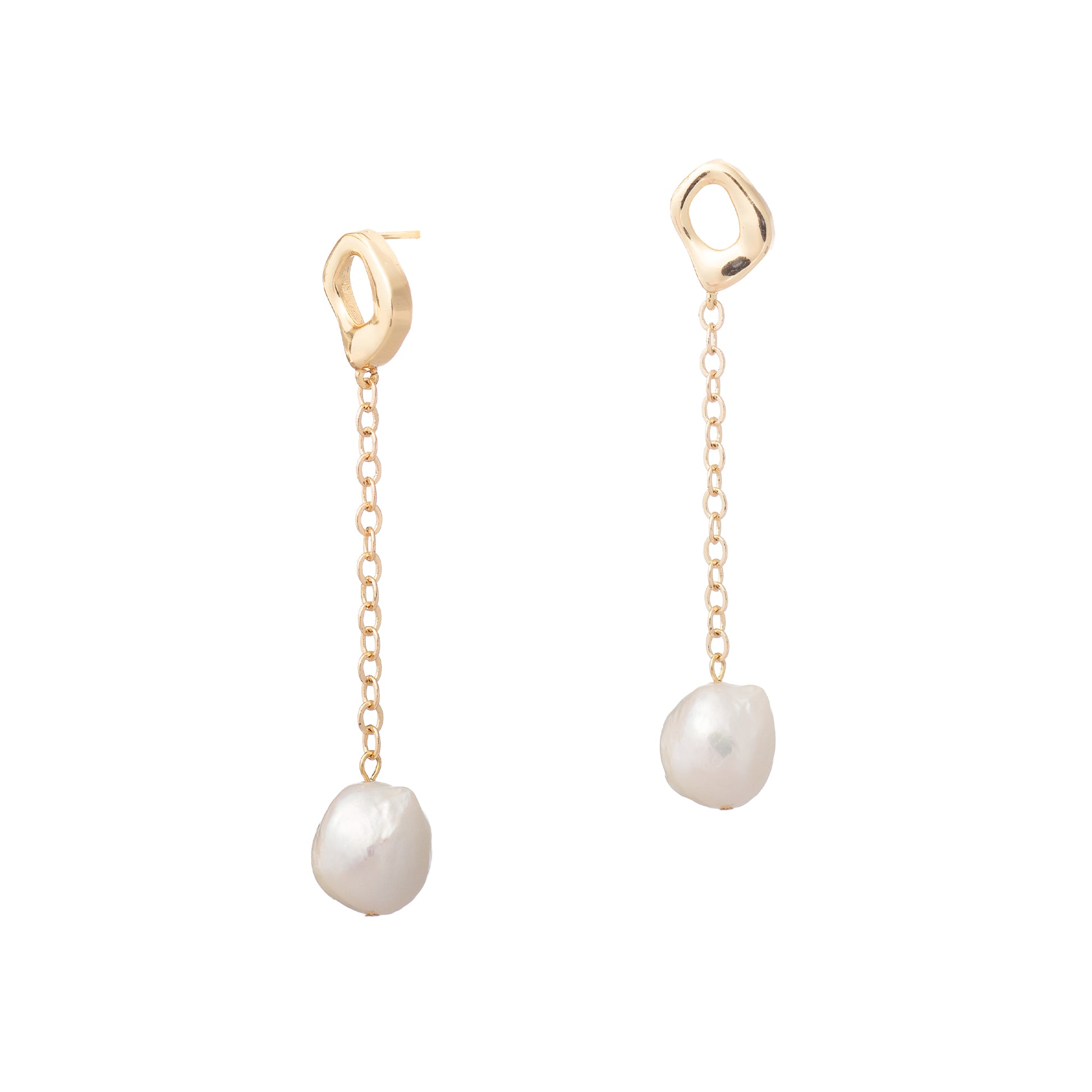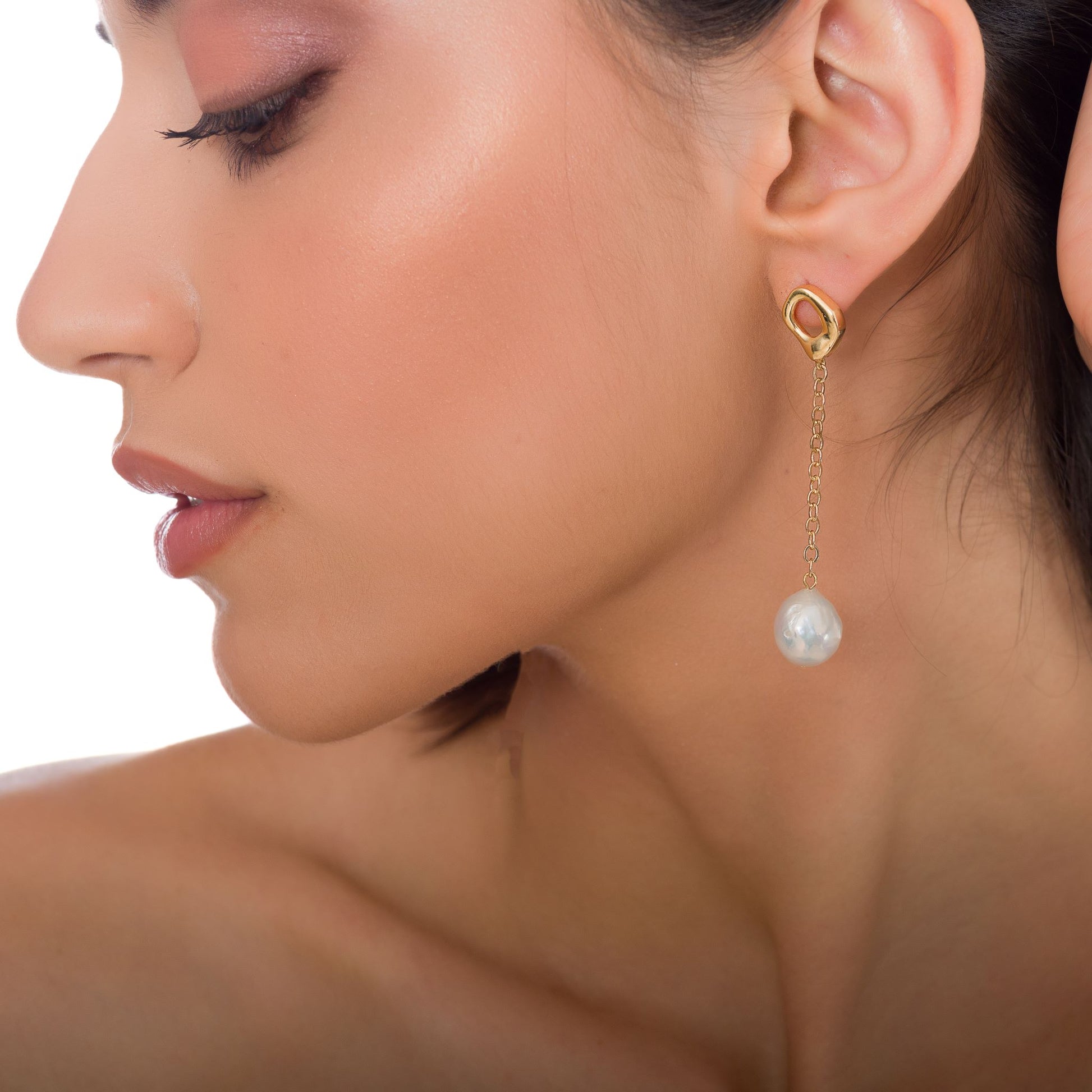 SJÖPÄRLA är ett stilrent och modernt örhänge. De hängande vita sötvattenpärlorna på 14K guldpläterad mässing reflekterar den naturliga lystern och glansen i sjön. Med sin tidlösa stil är detta ett örhänge som kompletterar alla outfits med en touch av naturlig elegans.
