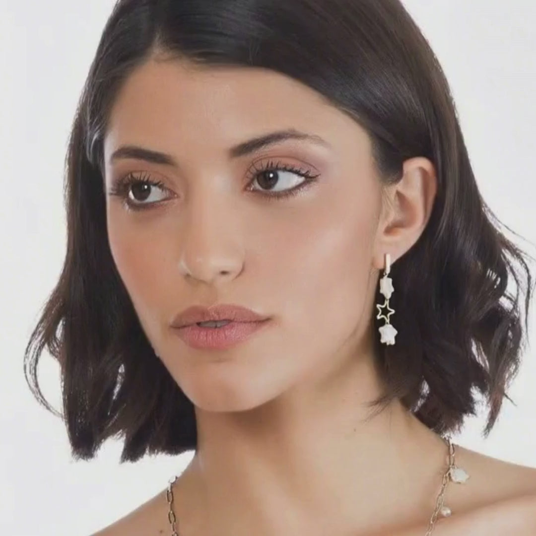 CELESTIA är himmelskt vackra örhängen skapade för dig som söker tidlös lyx med en naturlig elegans. De unika stjärnformade barockpärlorna fångar ljuset mjukt och påminner om havets skimrande yta i solnedgången.