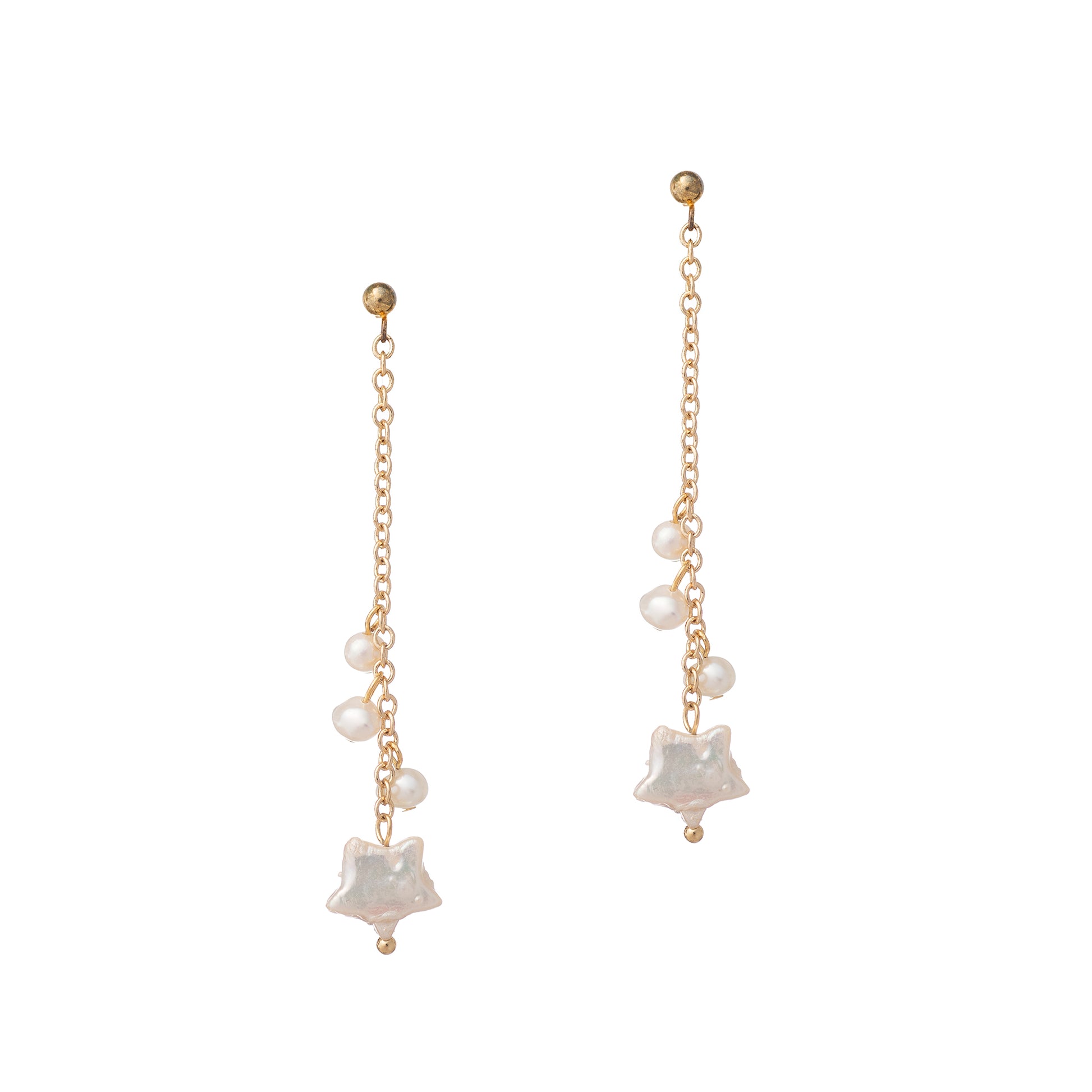 STJÄRNFALL är ett vackert smycke med fallande stjärnformade baroquepärlor på 14K guldpläterad mässing. Dessa ger en himmelsk elegans och lyx med sina glittrande detaljer och unika design. Idealiska för att lägga till en touch av glamour till varje outfit.