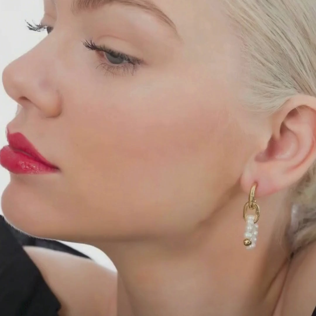 KRINGLA är ett elegant par örhängen där modern design möter tidlös elegans. Varje sötvattenpärla är varsamt formad till en cirkel och infattad i 14K guldpläterad mässing, vilket skapar ett balanserat och sofistikerat uttryck.