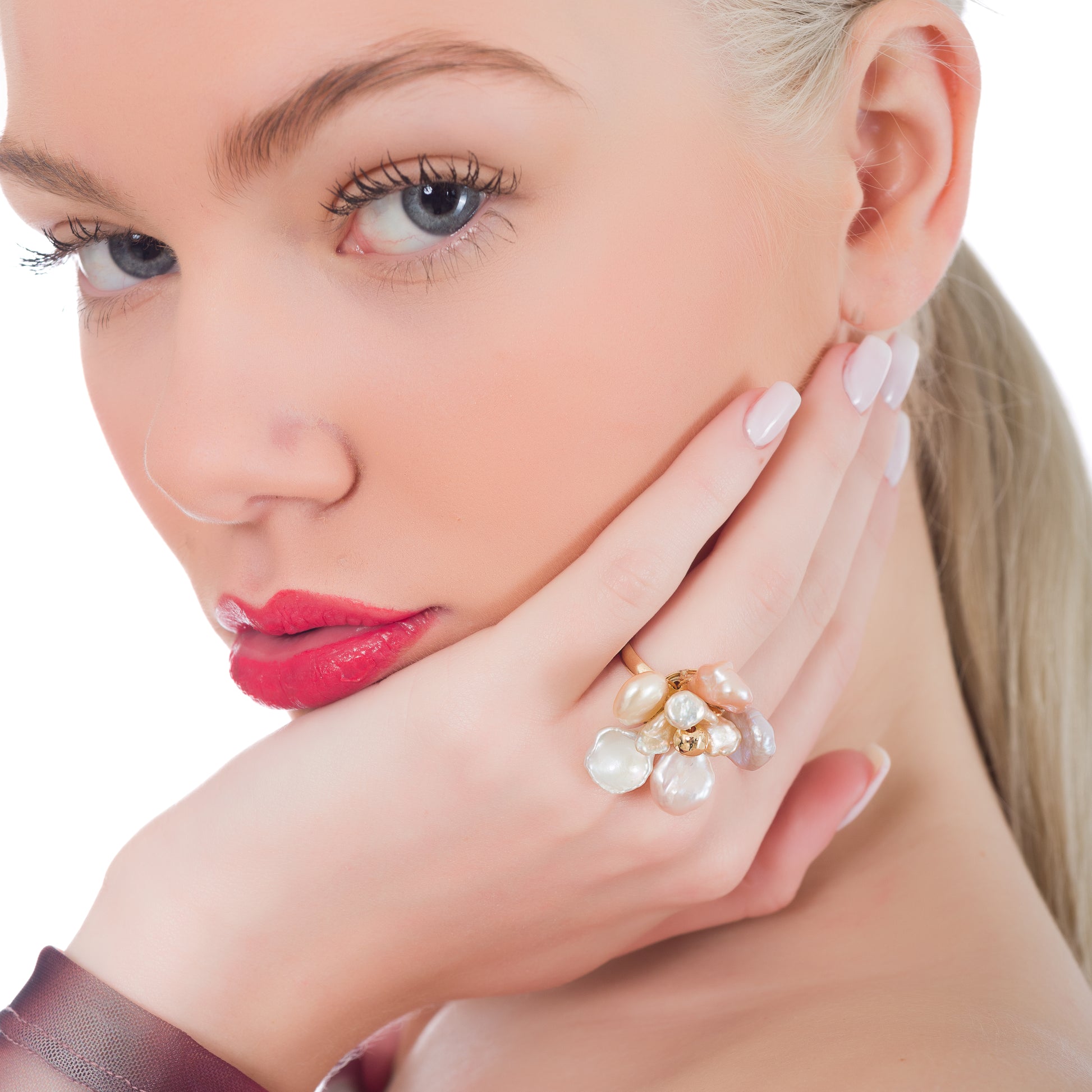 NORDISK DRÖM är en unik skapelse formad som en blomma av skimrande sötvattenpärlor. Blomsterdesignen ger ringen en mjuk och feminin känsla. Den justerbara ringen utstrålar enkel elegans och tidlös charm- ett smycke som låter din skönhet blomma, precis som pärlblommans förtrollande form.