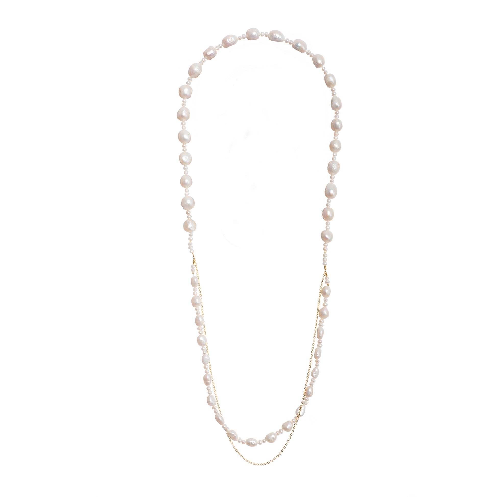 SJÖJUNGFRU är ett overhead halsband som är en hyllning till havets mystik och skönhet med de naturliga glänsande pärlorna. Designen påminner om vågor och snäckskal, vilket ger halsbandet en drömlik och elegant känsla. Ett perfekt val för den som vill bära en bit av sjöjungfruns magiska värld.